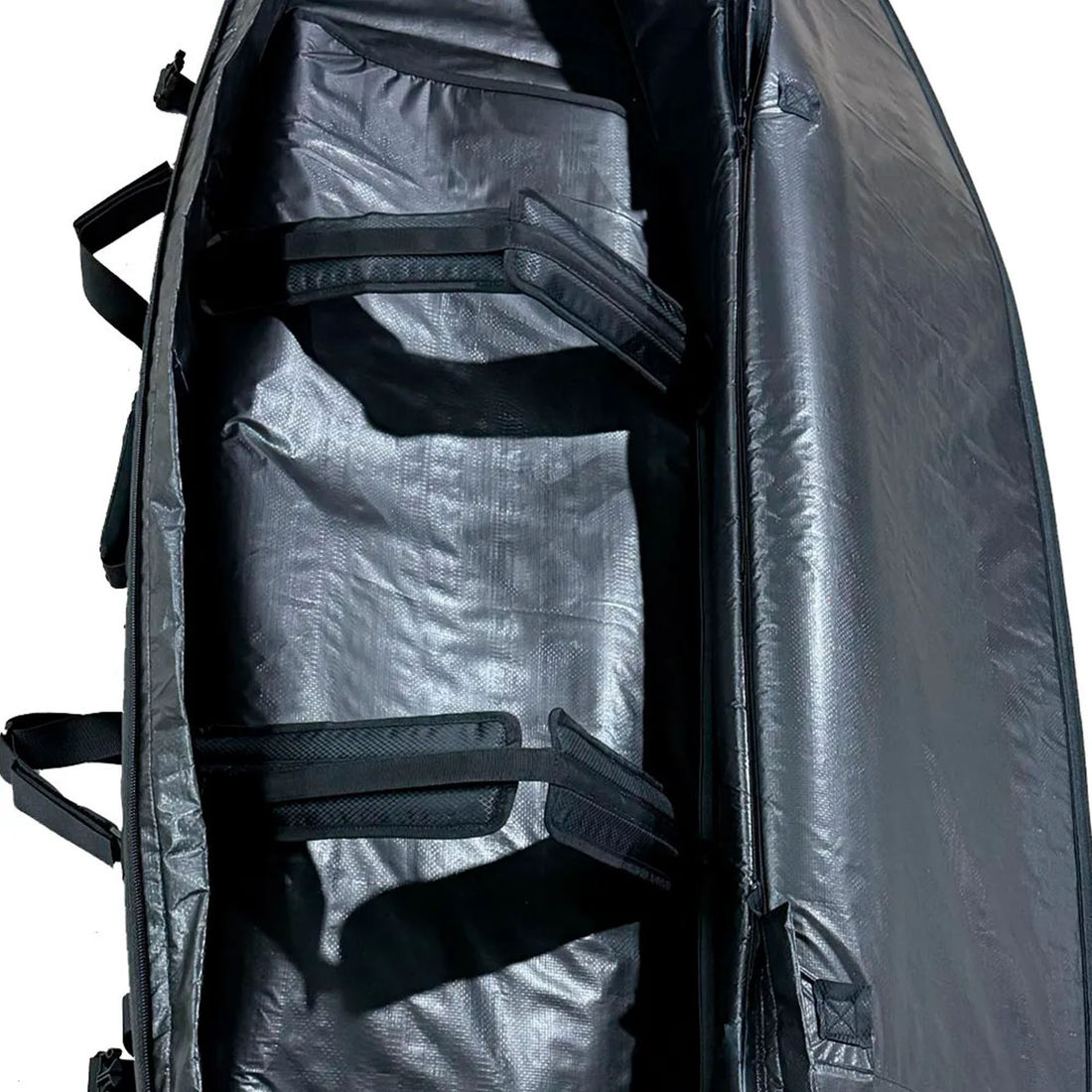 - Alças internas com velcro de alta resistência para fixação das pranchas