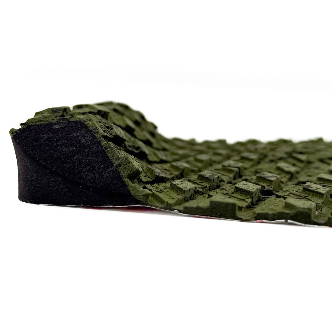 O novo grip (ressaltos do EVA) consiste em um sistema de fresa em formato losangular triplo e vazado, onde conseguimos obter maior segurança e aderência nas manobras, grudando de verdade o pé no seu deck.