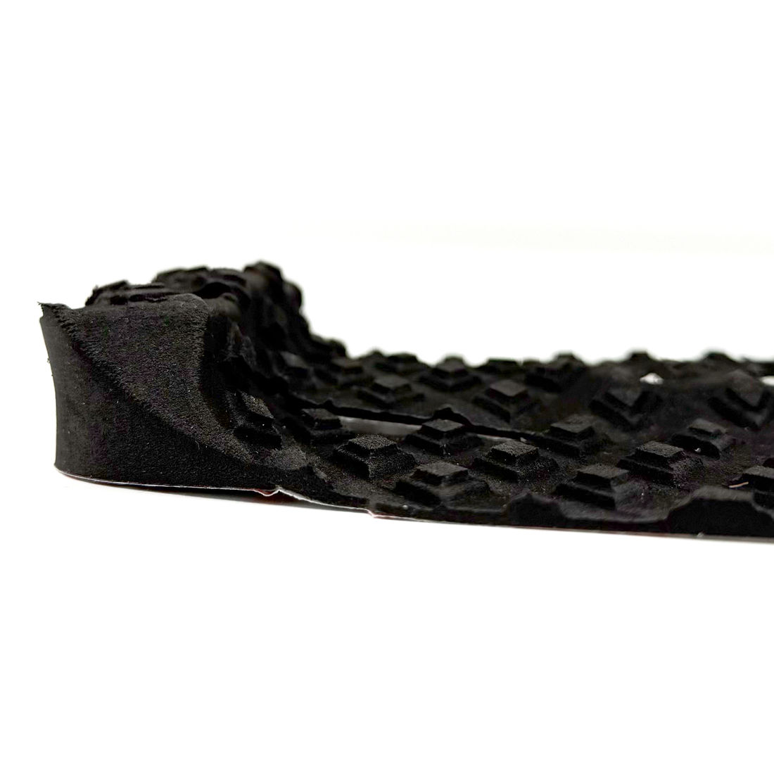 O novo grip (ressaltos do EVA) consiste em um sistema de fresa multidirecional quadrado e vazado, onde conseguimos obter maior segurança e aderência nas manobras, grudando de verdade o pé no seu deck.