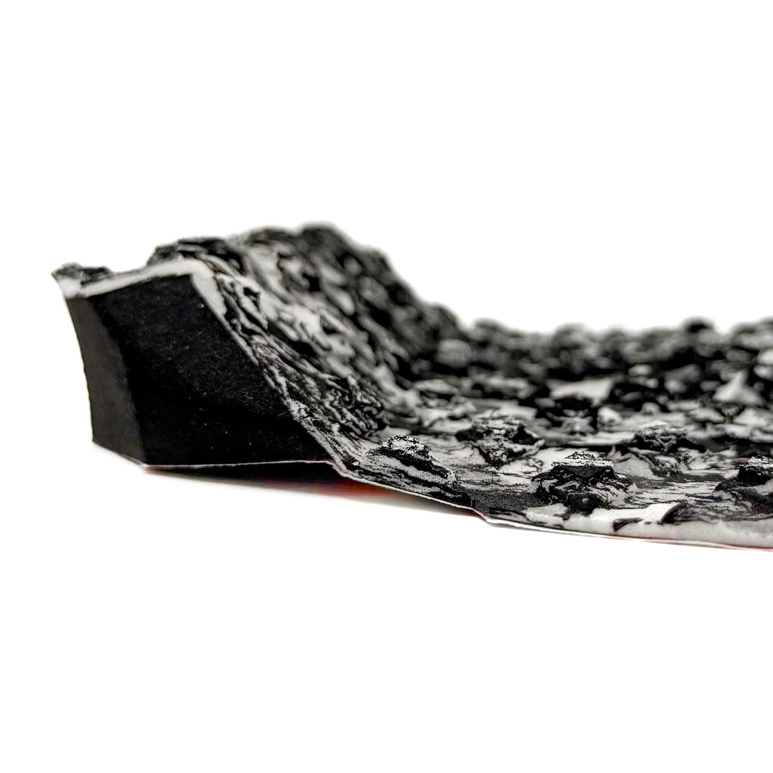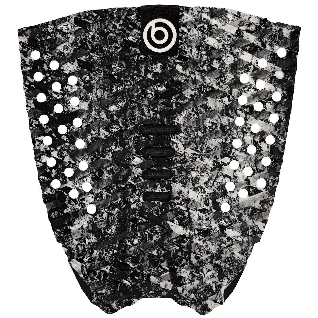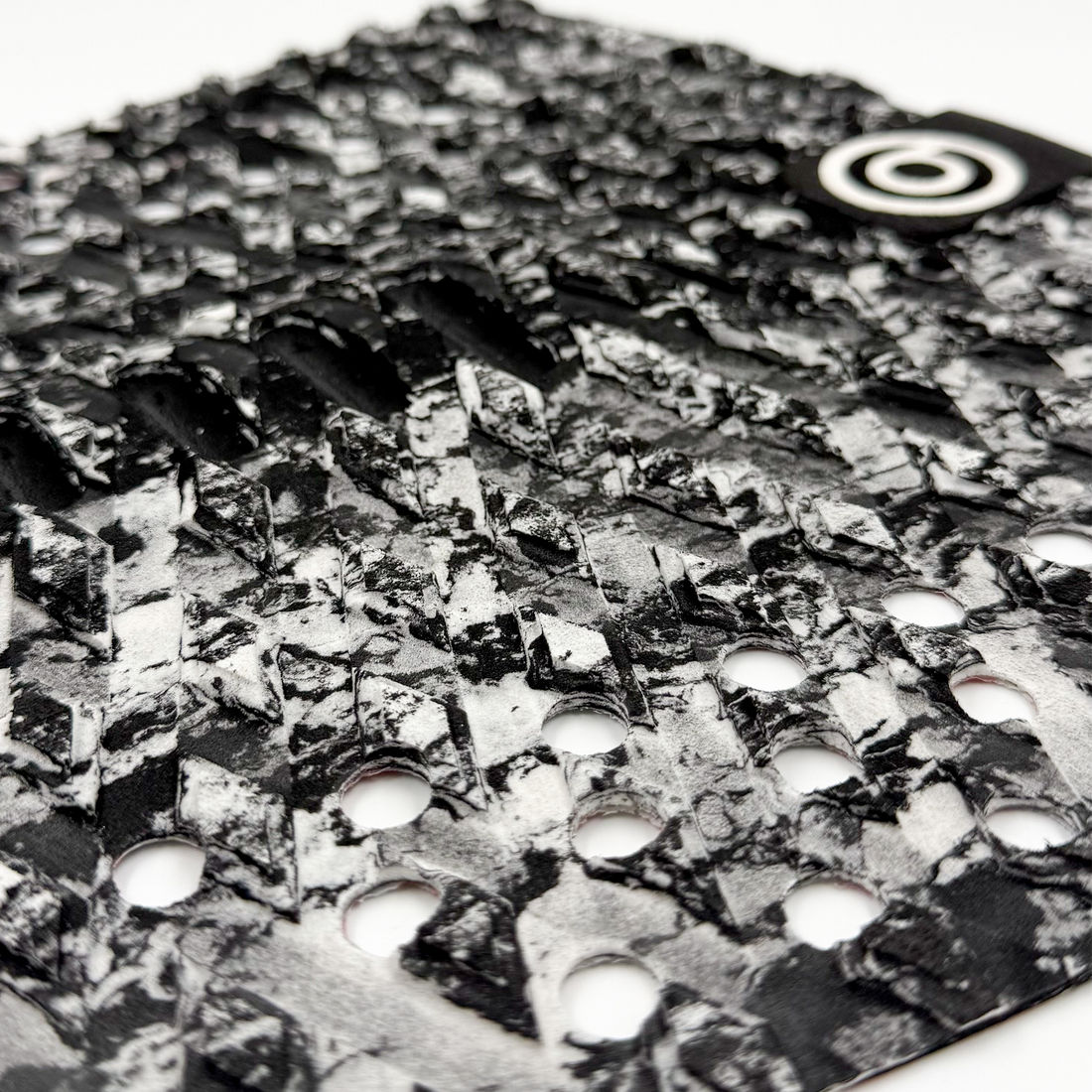 A fresa do deck (ressaltos no EVA), é o modelo que chamamos de "Sanded Diamond" (diamante) e foi escolhida a dedo entre as diversas variedades que existem no mercado do surf. O formato dela são em losangos duplos, um maior embaixo e um menor sobre ele, com a superfície lixada, o que garante máxima aderência durante as manobras.