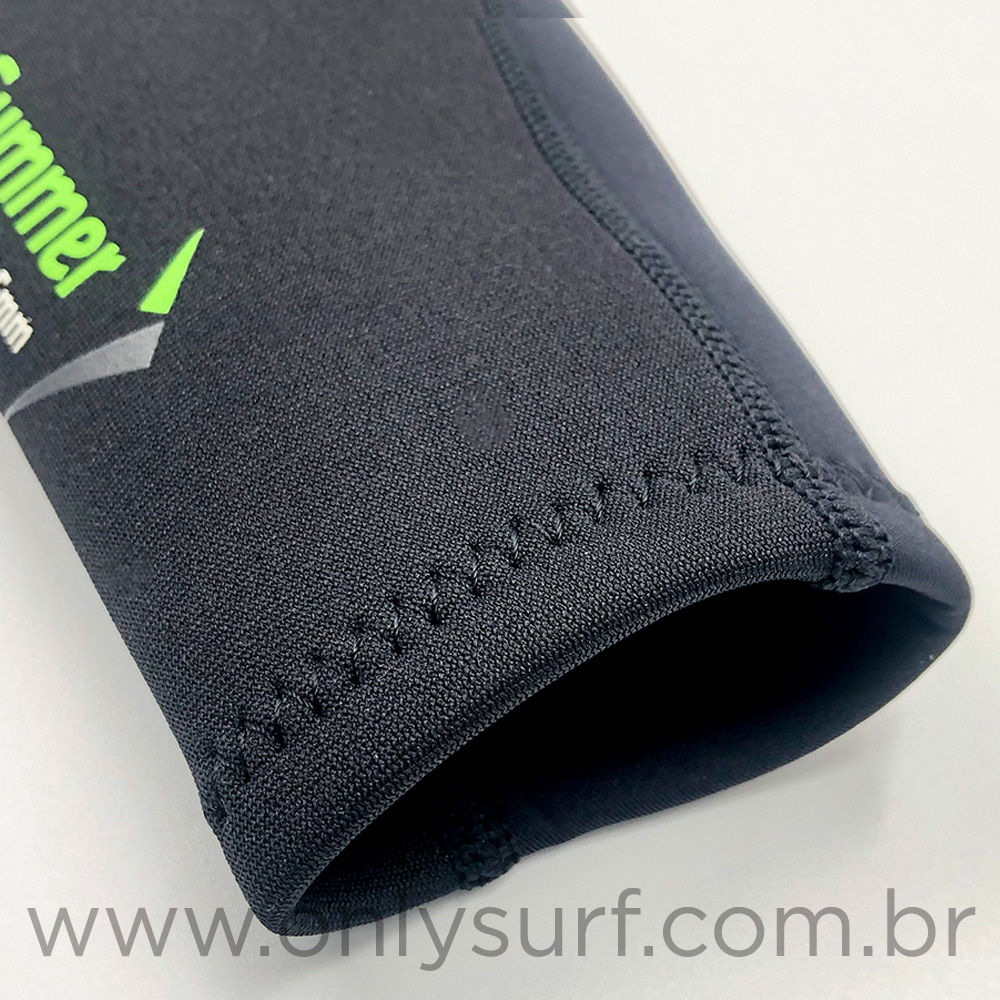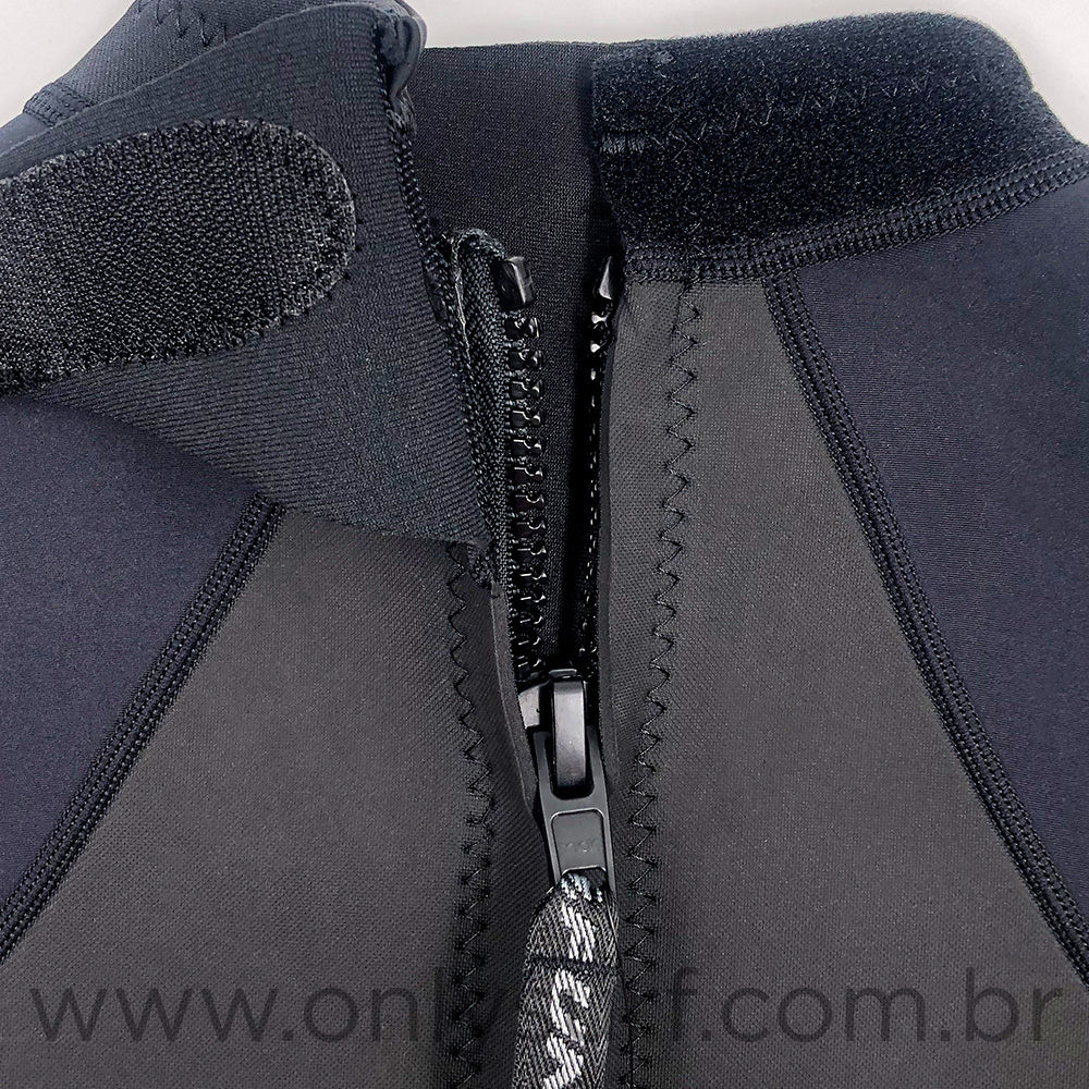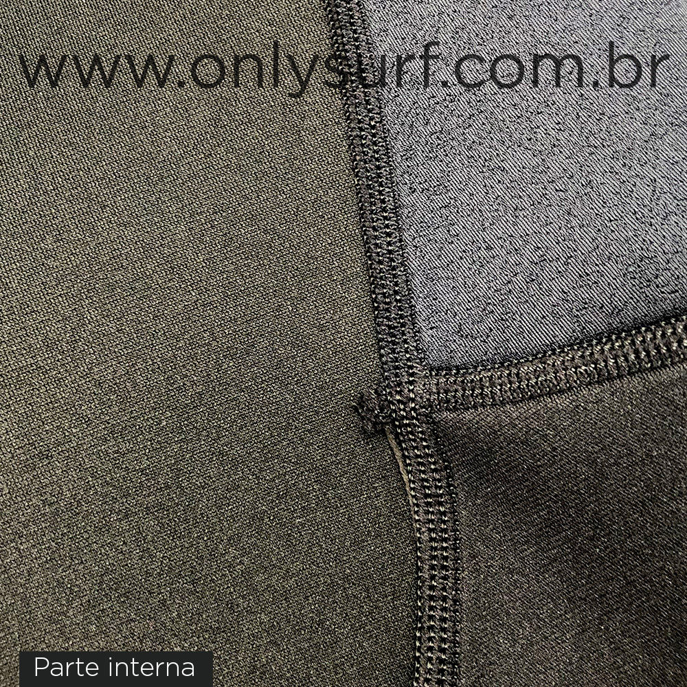 Neoprene: Flexível 100% Strech 4-way (expande para os 4 lados), na área das axilas, braços, ombros e costelas, muito leve e confortável. O restante da roupa é em neoprene um pouco menos flexível, com alto poder de isolamento térmico e durabilidade.