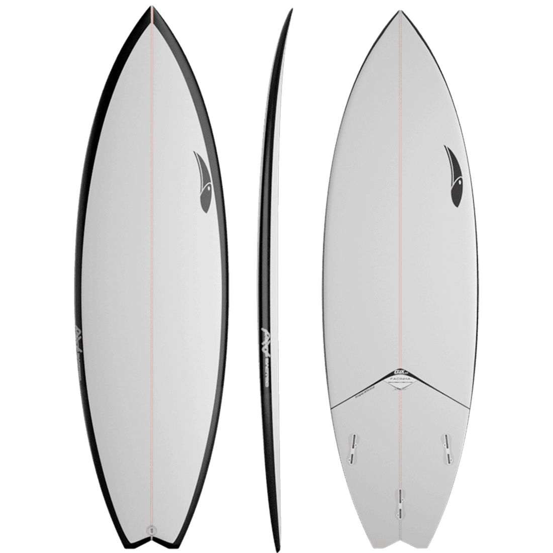 O fundo é CONCAVE, a rabeta SWALLOW e o sistema de quilhas TRIFIN.