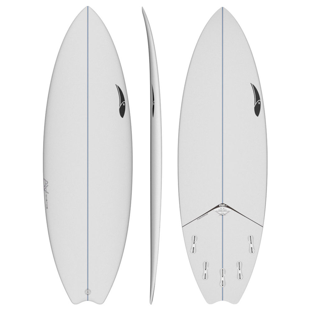 A rabeta é a Swallow Gostosa, especialmente desenhada para este modelo, já o sistema de quilhas é multifins, que possibilida uma grande variação de combinações, tri ou quadri, com encaixes compatíveis com FCS 1 ou FCS 2, com uso de parafusos.